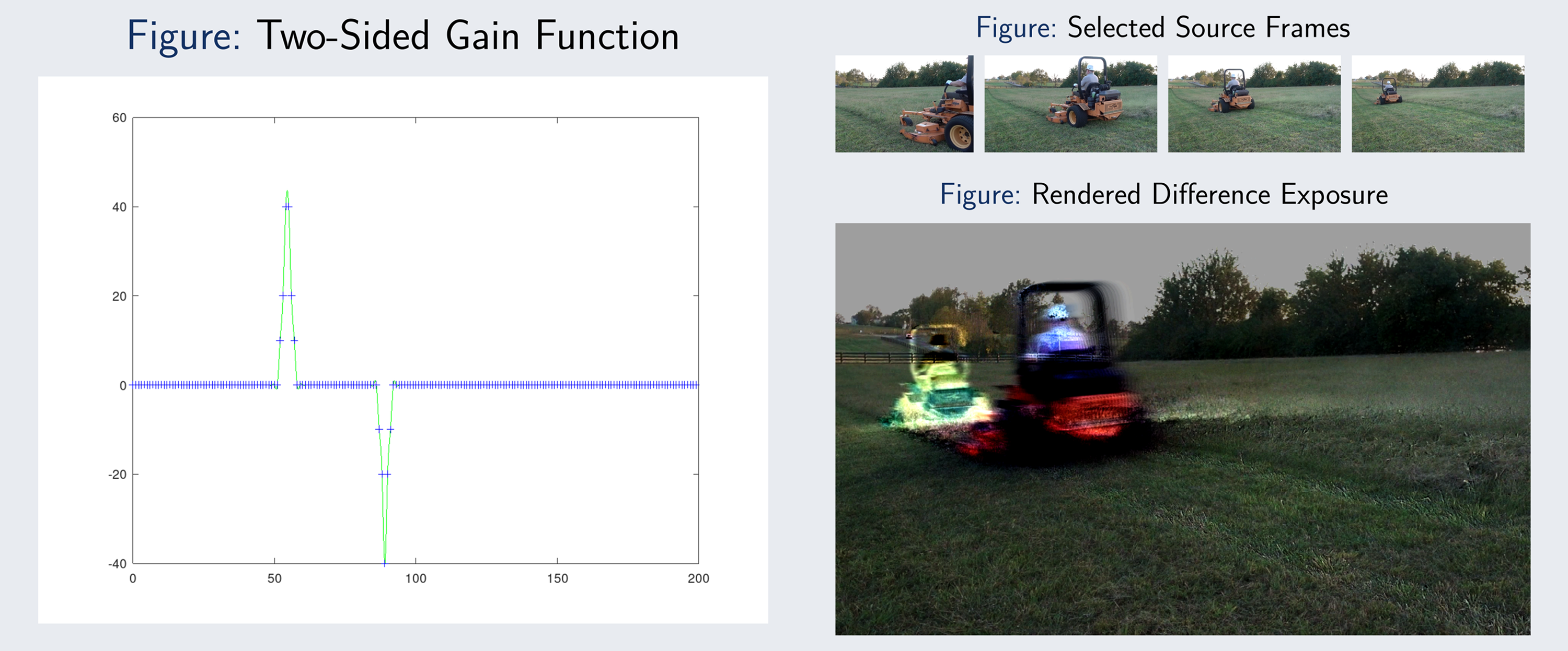 The first is an Octave script, NonUniformPoC.m, which depends only on FFMPEG. This script can ingest a sequence of video frames to simulate continuously sampled incident light, and apply user-specified spatial and temporal non-uniformities to the integration of that light. This very crude proof-of-concept implementation serves primarily as a testbed for algorithms and representations, as well as an easy way to experiment with the effects which can be produced, and is not tuned to be particularly fast or high quality.