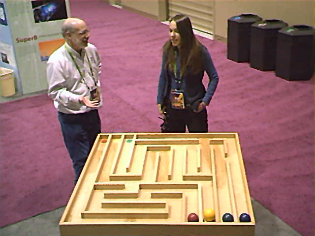 Although our exhibit this year will look a bit different (due to squeezing into 15'x20' because of the smaller exhibit hall), we'll still have that wooden maze with the four colored balls in it. Each of the colored balls has a different path to take (MIMD), yet it is perfectly feasible to get all the balls to their respective destinations by a series of tilts of the table (SIMD). Yes, you really can execute MIMD code on SIMD hardware with good efficiency... Click on the maze above for a ~50MB video showing the maze in action. Fundamentally, this is what our latest software does for GPUs (Graphics Processing Units). Specifically, it can take shared-memory MIMD code written in C and efficiently execute it on an NVIDIA CUDA GPU or OpenCL target (including AMD GPUs).